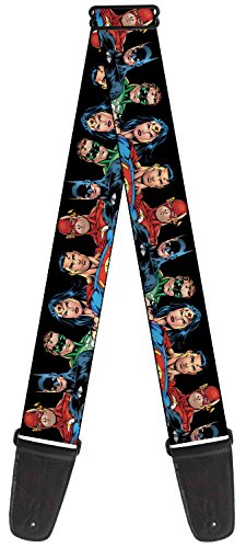 -. Title : Justice Leagues Elite Forces Superheroes Faces Guitar Strap 29-54" Adjustable