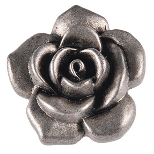 Mibo ABS Metal Plated Shank Button 3D Rose Flower Shape 48 Line MatteAntique Silver 5 Pack