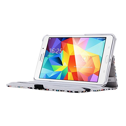 - Feature : Specifically designed for Samsung Galaxy Tab 4 7.0 inch tablet SM-T230 (2014 released)(Not Fit Samsung Galaxy Tab 4 7.0 Lite) / Made from durable Synthetic Leather with soft Microfiber interior to prevent scratches / Rotates 360 degrees in the case for flexible landscape and portrait viewing / Designed with a holder for stylus / Elastic band holds your tablet closed securely while on the go