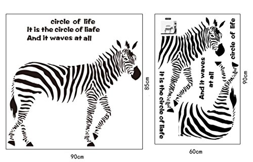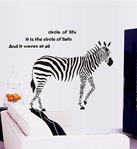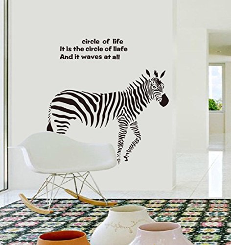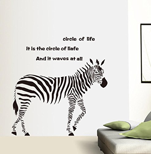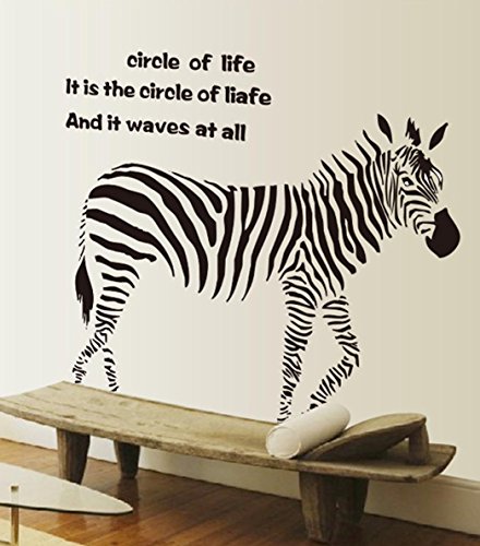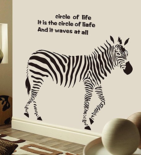 BIBITIME Zebra Wall Decal "Circle of life It is the circle of liafe And it waves at all" Quotes Sticker for Living Room Bedroom Nursery Kids Room Decor