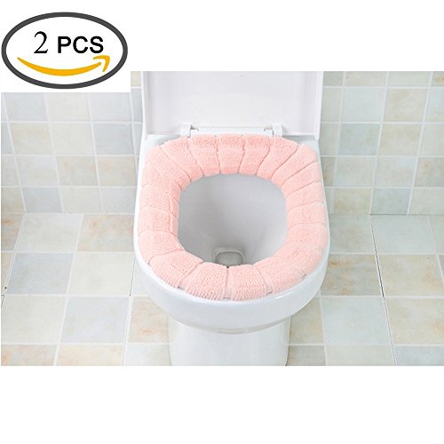 Angogo Soft and Warm Thicken Toilet Seats Covers Stretchable Washable Cloth 2PCS(pink)