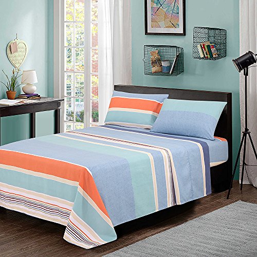 * Twin 4pc Set: 66" by 96" flat sheet; 39" by 75" fitted sheet and two 20" by 30" pillowcase.