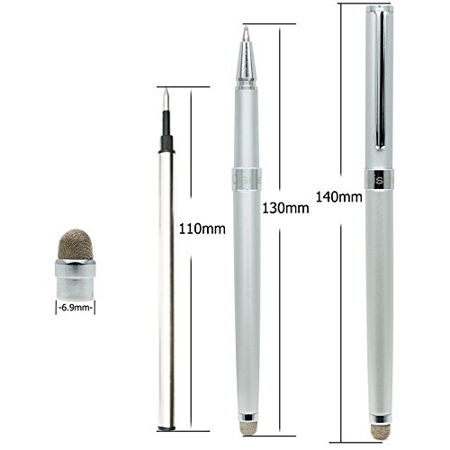 Ciscle Hybrid Twist 2-in-1 Stylus and Ballpoint Pens Bundle with Interchangeable Tips for iPad, iPhone, Galaxy Tab Series and Other Capacitive Touch Screens Devices_Silver