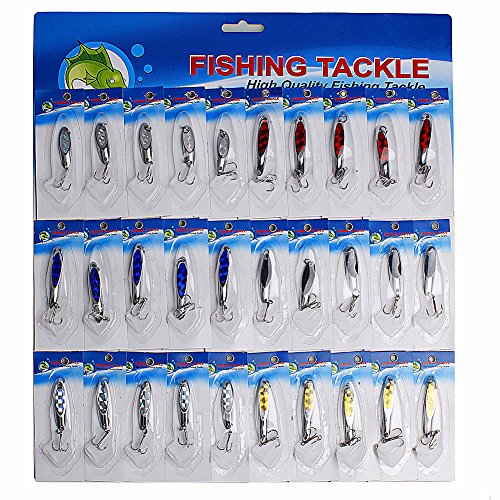 -. Feature : You will get 30Pcs spoon fishing lure in 1 card ,Each lure comes with 1 sharp treble hook.Durable material contributing to long service life. / The Lure is Smooth and rapid diving action. With noise paillette, making noise to attract fish. / Cast or trolled, this spoon sports a unique wiggling-and-wobbling action. / The spoon is absolutely irresistible to pike, walleye, bass, and all hungry other game fish species. / the card size : 37*35cm/14.6*13.8in , the lure size Manual measurement ,Please in kind prevail, thanks!