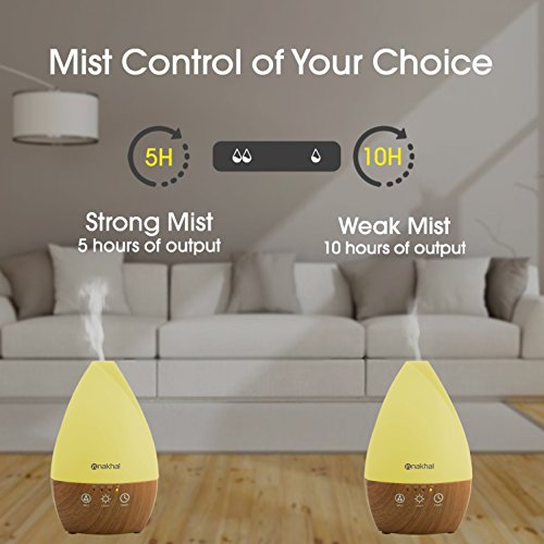 ✔️ MIST & TIMER CONTROL WITH PROTECTION: Select between 3 mist modes: strong/weak/no mist. This aroma diffuser can hold up to 200ml of water and produce 20-40ml of moisture per hour. It can run up to 10 hours of continuous output. 4-time setting modes:1H/2H/3H/steady on. After timeout or water runs out, turns off automatically.