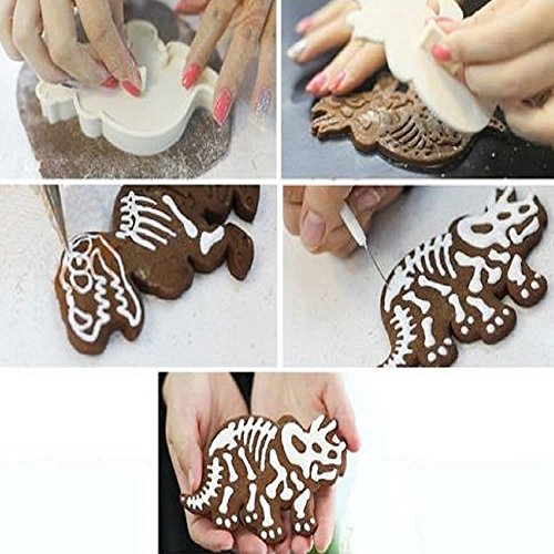 - EASY TO USE :Just roll flour into a pancake shape, put the dinosaur cookie cutter on flour and cut off, embed the stampers on it, and press, then you will see a dinosaurs biscuits mould. After that, pour into the cream or white chocolate by your favor, start to bake cookies.It's a breeze to make cute cookies.