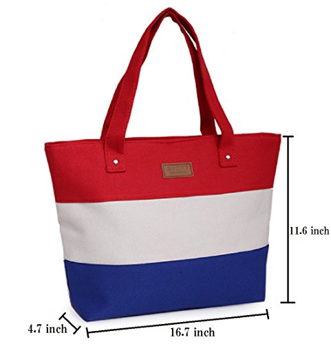 K.N. Womens Casual Canvas Zippered Shoulder Tote Bag / Daily Leisure Shopping Travel School Hand Bag