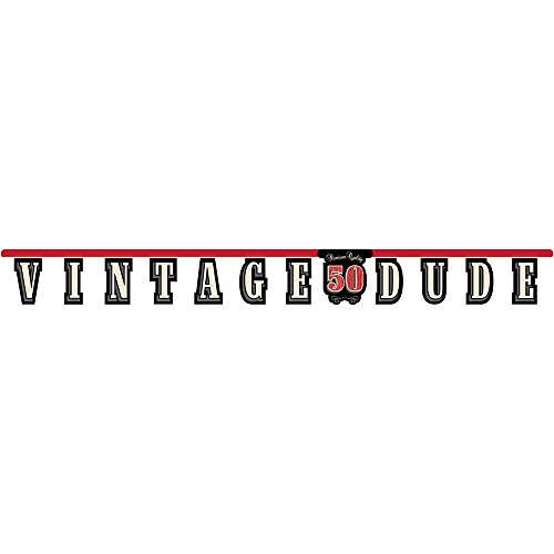 -. Feature : Vintage Dude 50th Birthday Party Supplies & Decorations Pack! Bundle Includes Dinner Plates, Dessert Plates, Napkins for 8 Guests Plus a Centerpiece, Jointed Banner, 18" Balloon, & Table Cover / (8) Vintage Dude Dinner Plates; (8) Vintage Dude 50 Dessert Plates: (16) Vintage Dude 50 Napkins / (1) 9" x 11.75" Vintage Dude 50 Centerpiece; (1) 8.75 ft. Vintage Dude 50 Jointed Banner / (1) 18" Foil Balloon Vintage Dude 50 Balloon (uninflated); (1) 54" x 108" Vintage Dude Plastic Table Cover / The Perfect Way to Celebrate your "Vintage" Dude's 50th Birthday Celebration!