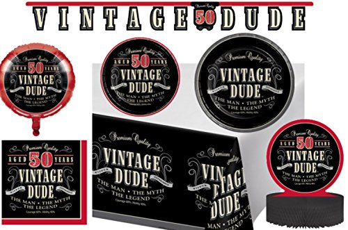 -. Title : Vintage Dude 50th Birthday Party Supplies & Decorations Pack! Bundle Includes Dinner Plates, Dessert Plates, Napkins for 8 Guests Plus a Centerpiece, Jointed Banner, 18 Balloon, & Table Cover