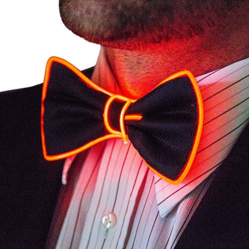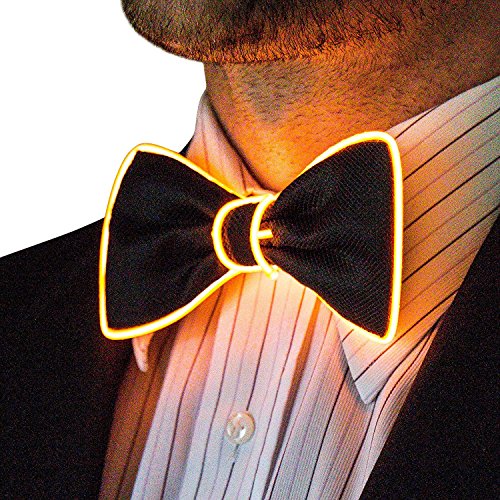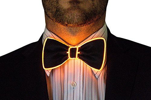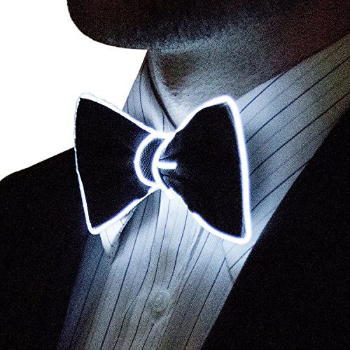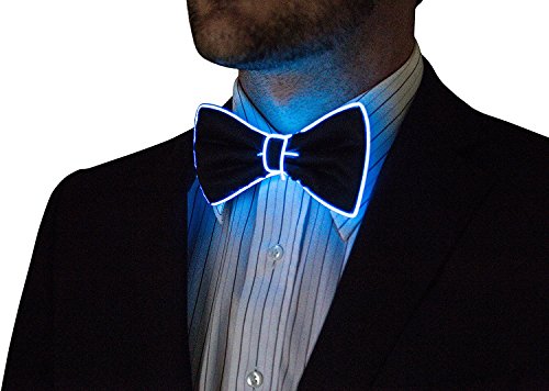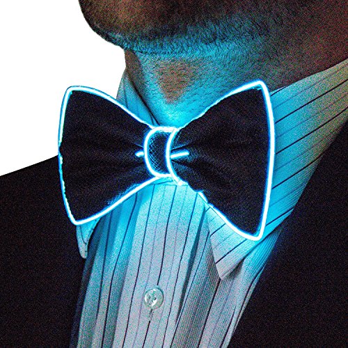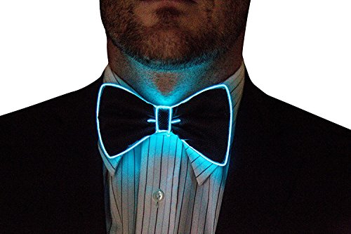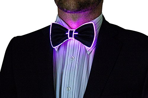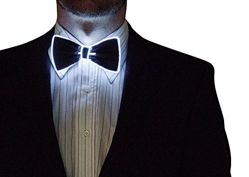 Binding : Apparel Product Description Features: The light up bow tie is made with El wire and is powered by a AA battery pack. The battery pack is perfectly hidden, it can be clipped to the back of the bowtie or inside of the shirt. The light is soft, which do not use UV and radiation. Packing: 1 GooGood Bow Tie. 0