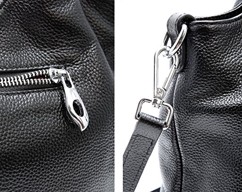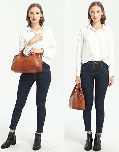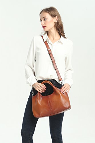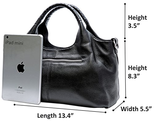 -. Feature : Well-designed compartments help keep a organized bag. It has a outside zipped pocket holding your keys and change. Inside the purse, 2 main compartments, 1 zipped pocket divider, 1 phone pouch, 1 card slot and 1 zipped pocket on the wall will keep you stuffs organized. / Solid fittings. All metal fittings are made of silver tone stainless steal. Zipper closure keeps your essentials in safe while providing smooth experience. Comfortable top handle and adjustable shoulder strap make it less hard to take the bag. / Leather of the purse comes from first layer of cow leather, bringing defined pattern and smooth feeling. We choose light-reflect polyester fabric as lining. You will find it easy to find stuff in bag. / Dimension: 13.4 (L) × 8.3 (H) × 5.5 (W) inches. Weight: 1.92 lbs. When hanged up with purse, the top of strap will be 21~24 inches higher than the top of purse body. (You can also drill the hole on strap to adjust the length) / After-sell: We earnestly promise that we will provide the highest quality products and the best after-sale services. Please feel free to contact us through "Contact Seller" when you need help, and we'll reply to you within 24 hours.