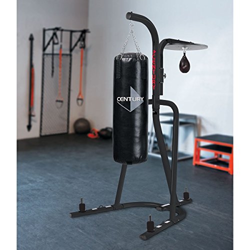 Studio : Century Publisher : Century Binding : Misc. Product Description Constructed of 3" tubular steel with three weight pegs for stability this dual purpose unit features space to hang a heavy bag and a speed bag from the platform. The speed bag platform adjusts vertically from 67" to 79" and has locking pins to lock the speed bag in place. Product includes a ball-bearing swivel for fast bag action. Some assembly required. 0
