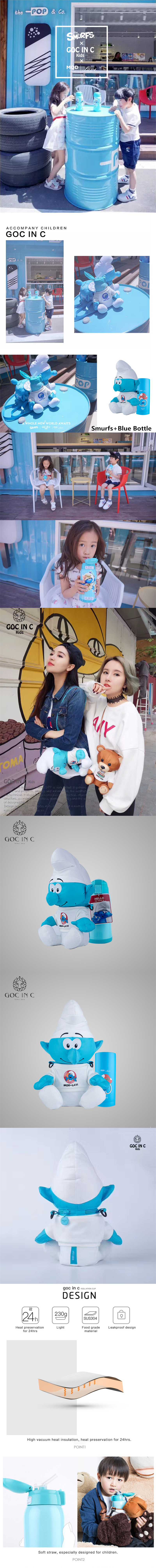 GOC IN C Cute Smurfs Blue Thermos Mug Baby Bottle Stainless Steel Children Vacuum Cup Bottle Insulation Cup
