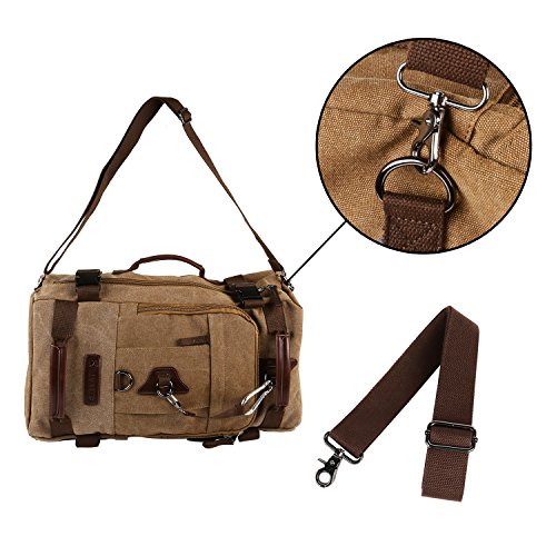 -. Feature : Made of high density 100% cotton canvas with special handling, this canvas hiking backpacking backpack is lightweight and red enough to take a beating. / This multifunctional backpack has a main capacity zippered pocket with a laptop computer pouch inside. The exterior pocket can hold your ipad, cellphone, pens and notebook, plus several small pockets for organization. / It can be carried as a briefcase for when you need to act professional, or you can bust out it's hide-a-way straps and throw it on your back for that hike up Mount Kilimanjaro. / Great gift for your family and friends during this holiday season. Come with a white linen canvas bag as an extra bonus. / We've upgraded the hardware with a firmer buckle. We provide 6-month manufacturer warranty on all parts. Buy with confidence.