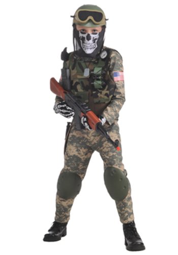 -. Binding : Toy -. Brand : Rubie's -. ClothingSize : One Size -. Color : multi-colored -. Department : boys -. Feature : Camo Trooper costume features green camouflage print jumpsuit / Vest, printed face scarf, helmet and knee pads included / Toy gun sold separately / Child's size small fits most 3 to 4 year olds, 44" to 48" tall with a 25" to 26" waist and 27" to 28" hips / For dress-up fun, a costume party, or Halloween, Rubie's Costume has been your costume company since 1947 -. Label : Rubies - Domestic -. Manufacturer : Rubies - Domestic -. Model : 881396 -. MPN : R881396 -. PackageQuantity : 1 -. PartNumber : R881396 -. ProductGroup : Toy -. ProductTypeName : CHILDRENS_COSTUME -. Publisher : Rubies - Domestic -. Size : One Size -. Studio : Rubies - Domestic -. Title : Deluxe Child Camo Trooper Costume
