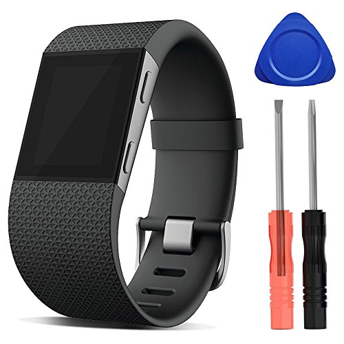-. Feature : Perfect Silicone Material - Auskic fitbit surge band is made of durable and flexible elastomer. Skin-friendly and comfortable wearing experience. / Buckle Design - Our fitbit surge strap is designed with Stainless Steel Buckle to ensure your watch secure. No worry about falling off your precious fitbit. / Flexible and Adjustable - This Fitbit Surge accessories wristband can be adjusted according to your wrist circumstance. Always a mental hole for you no matter your wrist is large or small. / Two Selected Size - Small size(5.5"-6.3"), Large size(6.3"-7.8"). Please choose the right size due to your wrist. / Package: Auskic fitbit surge replacement band + Screwdriver + Plastic Triangle Skid Sheet. Tracker is NOT included.