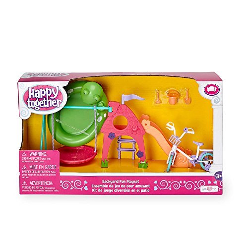 Let your little one enjoy a sunny day playing outside with You & Me Happy Together Backyard Fun Playset. This set includes everything your kids could want for fun in the yard. It features a turtle shaped kiddie pool, a swing and slide set, bike, bucket, rake & trowel.Feature
