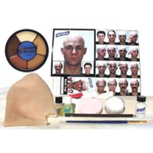 This complete kit includes the Regular sized Latex Bald Cap as well as all the make-up products you will need to attach, color and remove your bald cap as well as 16 step, full color instructions to ease you through the process so you can achieve professional results. The complete kit contains: Cap, Spirit Gum Adhesive, Spirit Gum Remover, Face Powder, Liquid Latex, Rubber Mask Grease Make-Up 5-color stack, Lining Pencil, Make-Up Brush, Powder puff, Foam cosmetic wedges, A Wedge of Red Rubber Round and again the complete pictorial and textual step by step instructions required. This kit makes one of the trickier make-up applications into something almost anyone can do and be happy with the results.Feature