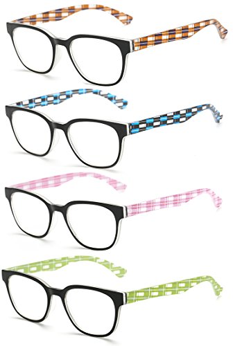 -. Title : SOOLALA 4 Pairs Wayfarer Readers Vintage Reading Glasses with Check Patterned Arms