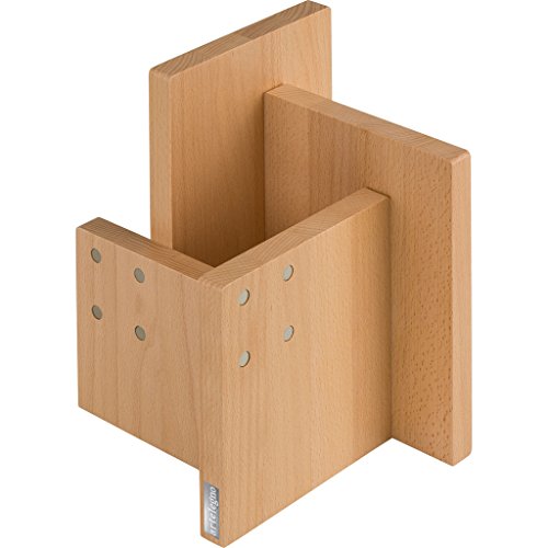 Artelegno Magnetic Knife Block Solid Beech Wood 4 Panel with Utensil Holder, Luxurious Italian Kombi Collection by Master Craftsmen Displays/Protects 8 High-End Knives, Eco-friendly--Natural Finish