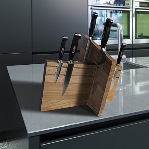 Artelegno Artisian Knife Block Solid Beech Wood Magnetic, Display and Protect up to 16 High-End Knives Elegantly, Luxurious Italian Milano Collection by Master Craftsmen, Eco-friendly, Natural Finish