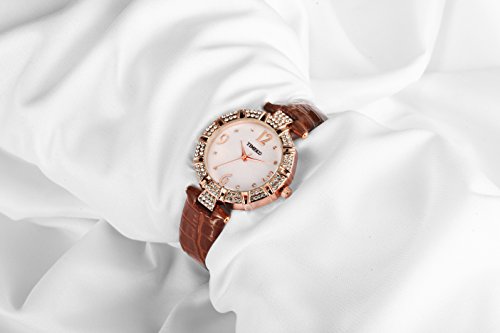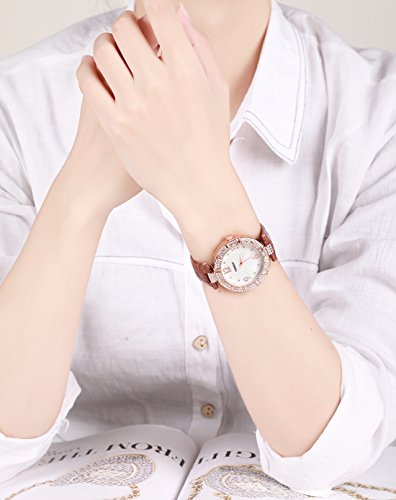 [Description] ★Water Resistance: 30M ♥4 Color Optional: Search for W50449L ★Arabic Numerals 12_3_6 and 9 on White Natural Shell Dial ★Elegant Round Diamond Mosaic Case with Leather Watch Strap ★Fashion Design with Luxuary Look_ Elegant Style ★Replacing within 30 Days_ 1 Year Warranty