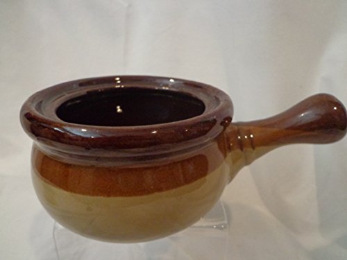 -. Brand : unmarked -. Feature : Brown and tan soup bowl / bean pot with handle / Measures 7 1/2" edge to end of handle / Bowl is approx. 4.5" diameter, 2.5" deep / Ready to ship! / very good condition without any defects noted -. Label : unmarked -. Manufacturer : unmarked -. PackageQuantity : 1 -. ProductGroup : Kitchen -. ProductTypeName : KITCHEN -. Publisher : unmarked -. Studio : unmarked -. Title : Retro Brown Soup Bowl, Stoneware Onion Soup Bowl, Bean Pot, Stoneware Pot