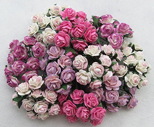 Handmade 100 pcs mini Rose mixed Pink color Mulberry Paper Flower 10 mm scrapbooking wedding doll house supplies card, Products From Thailand By RATREE SHOP.