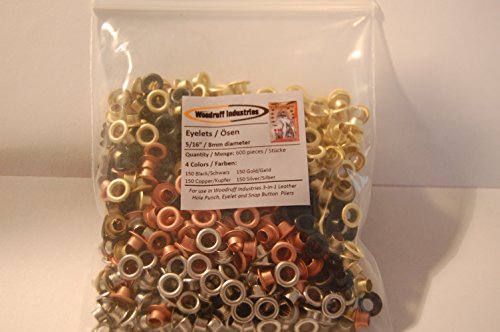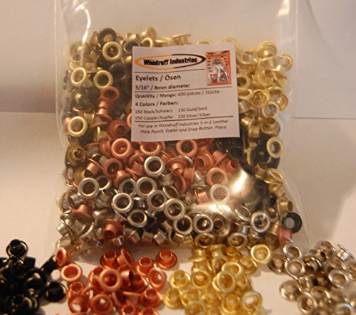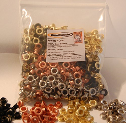 Woodruff Industries - 600 self backing Eyelet Pieces 5/16 Inch 4 colors (150 Black, 150 Copper, 150 Gold, 150 Silver) Metal Eyelets for Scrapbooking, Arts, Crafts, Shoes, Clothes