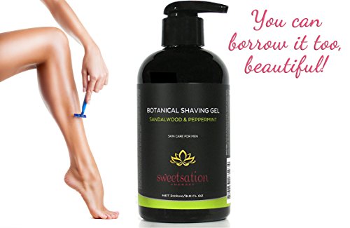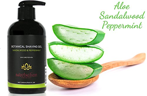 Botanical Shaving Gel, sandalwood & peppermint, 8oz