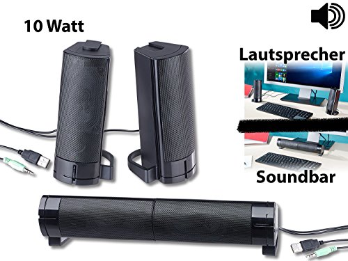Auvisio auvisio Standlautsprecher: 2in1-PC-Stereo-Lautsprecher und Soundbar, 10 Watt, USB-Stromversorgung (Musik-Lautsprecher)