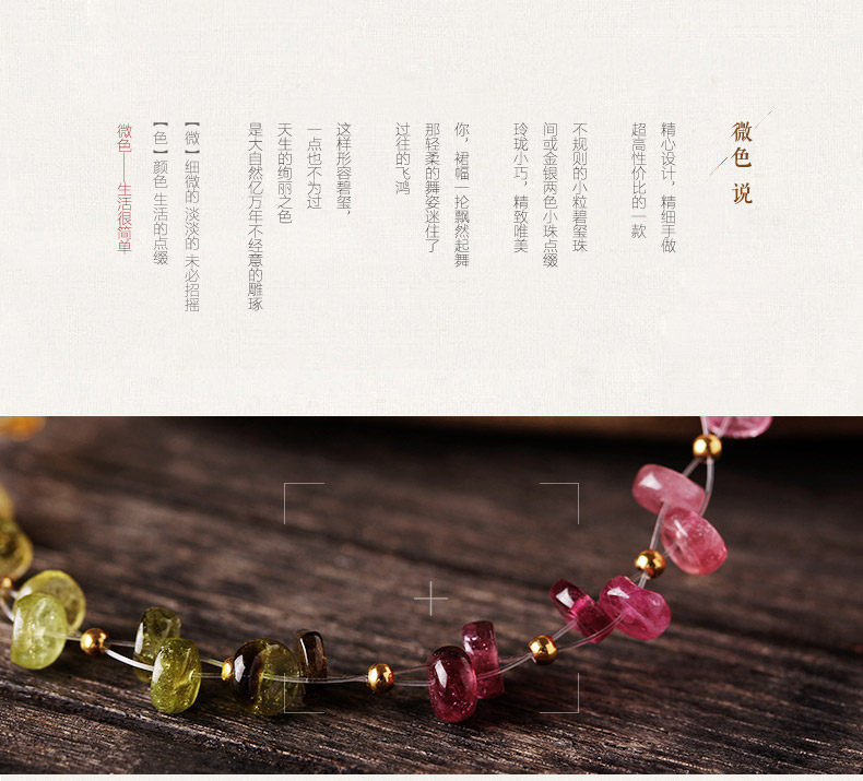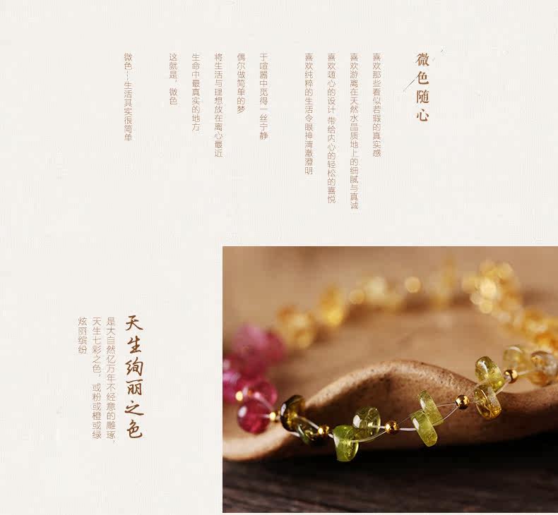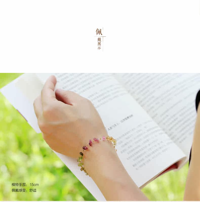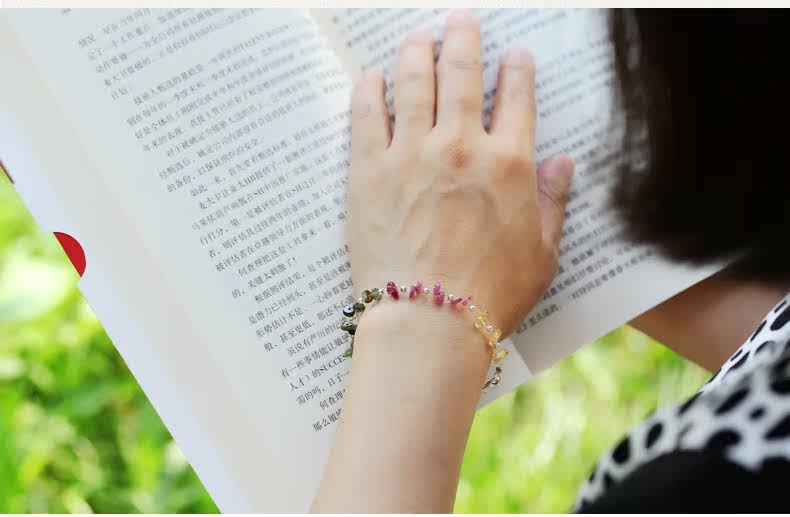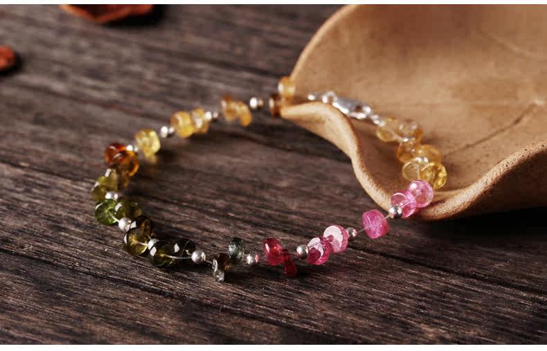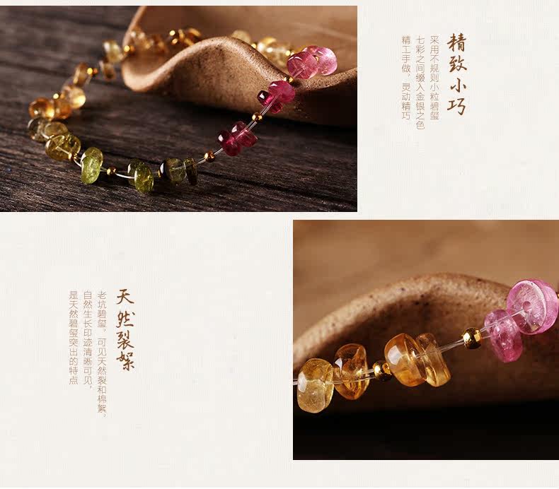 天然碧玺水晶手链女单圈彩色水晶手串 简约清新文艺 饰品