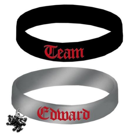 -. Feature : Team Edward with Lion Rubber Bracelets. / These bracelets are made of rubber the black on has the word "Team" in red, and the grey one has "Edward" in red plus metal Lion charm. / New on gift card. Usually dispatched from "A CHARACTER SHOP" within 1 working day.