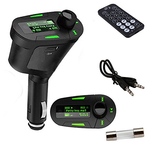 -. Title : 人気 車載用 FMトランスミッター/MP3プレーヤー iPhone/iPod/Samsung等のスマホ対応 USB/SDカードスロット搭載 リモコン(グリーンLCD)