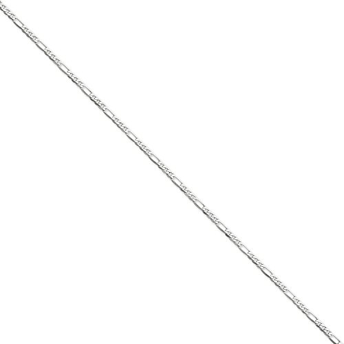 SPECIFICATIONS: Jewelry Type: Anklets, Chain Type: Figaro, Anklet Type: Chain Styles, Material: Primary: Gold, Material: Primary - Color: White, Material: Primary - Purity: 14K, Finish: Polished, Plating: Rhodium, Chain Length: 9 in, Chain Width: 2.75mm, Clasp /Connector: Lobster, Feature(1): Solid, Profile Type: Flat