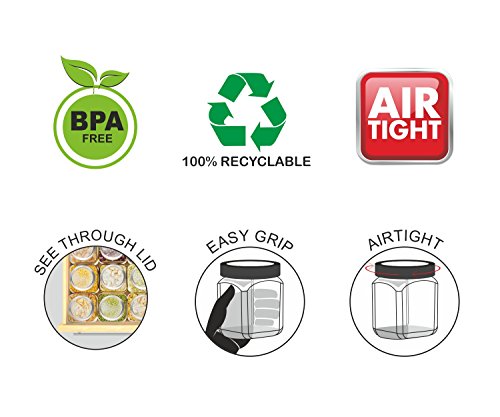 - GLASS LOOK; UNBREAKABLE, LIGHTWEIGHT: Get The Beautiful LOOK OF GLASS Containers Without Them Shattering. These Jars Consist Of LIGHTWEIGHT Bpa Free Food Grade PET Plastic, And Will Withstand Falls And Slips.