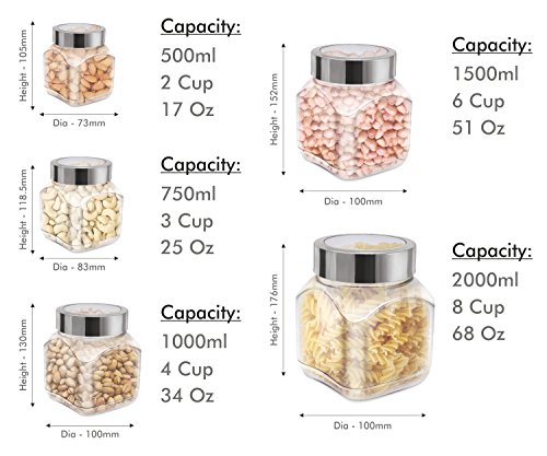 - ORGANIZED, ATTRACTIVE & SPACE SAVING: Have Your PANTRY, Cupboards, Kitchen Cabinets, Drawers, VANITY, Bathroom, And SHELVES Beautifully ORGANIZED With These Jars. Their CUBE SHAPE Will SAVE SPACE And Give Your Home A Neat And ATTRACTIVE Look. These Jars Will TRANSFORM YOUR HOME, And Will Make HOME ORGANIZATION EASY. Everything Will Look Updated With A NEW AND MODERN Touch.
