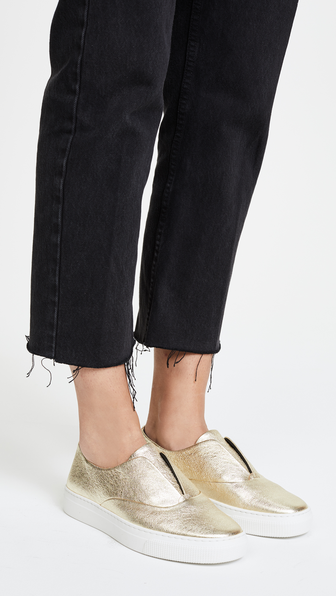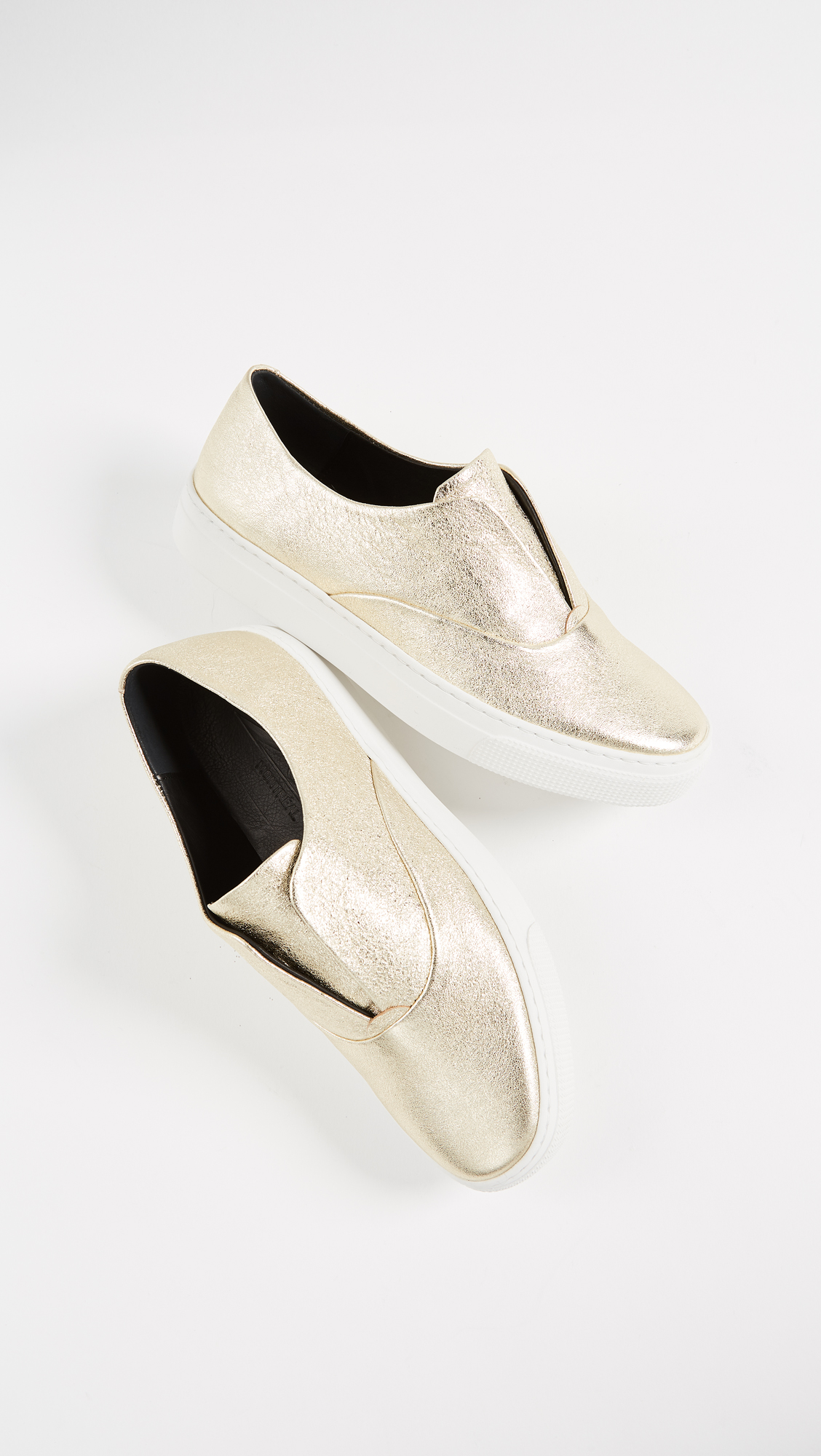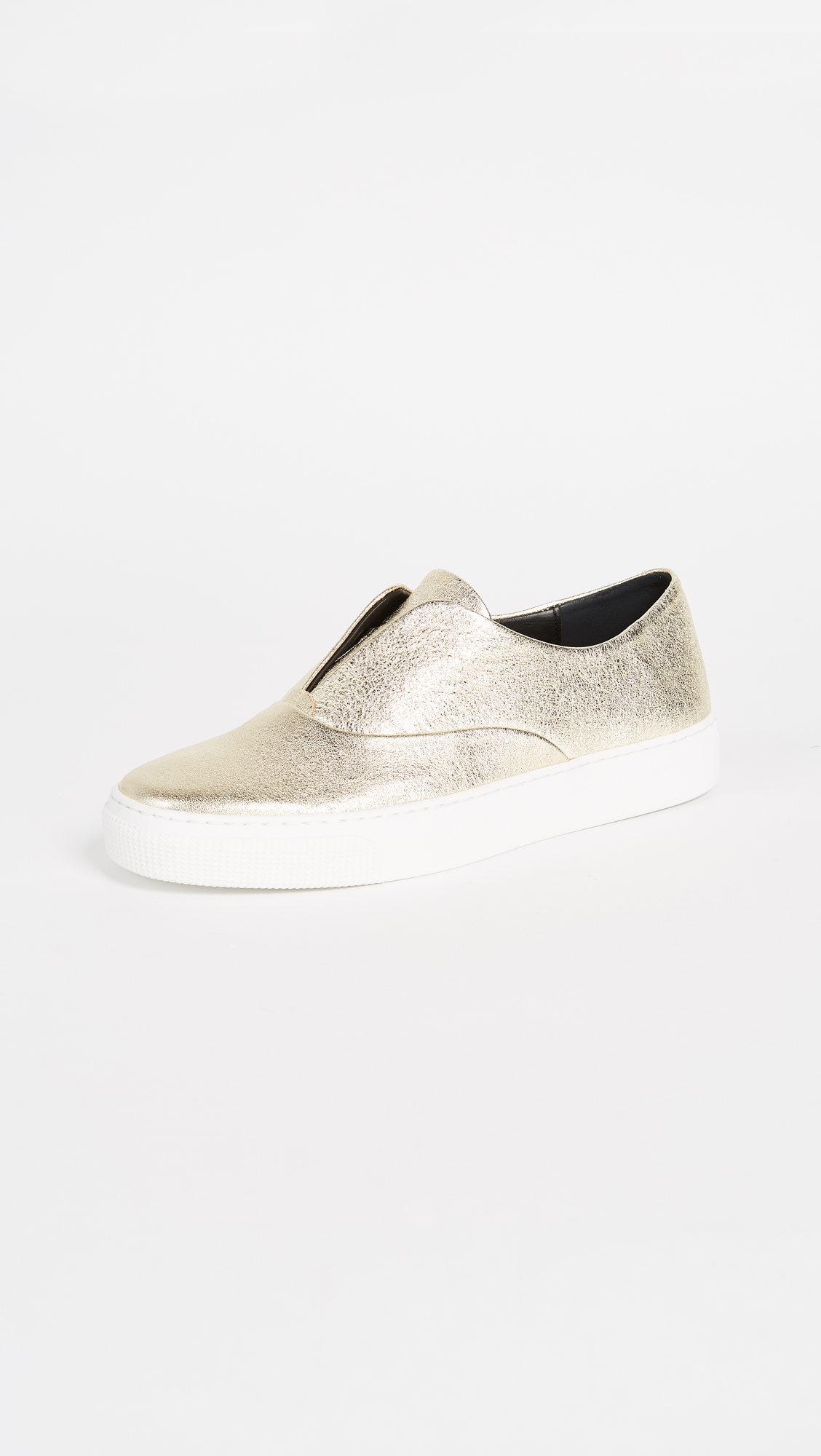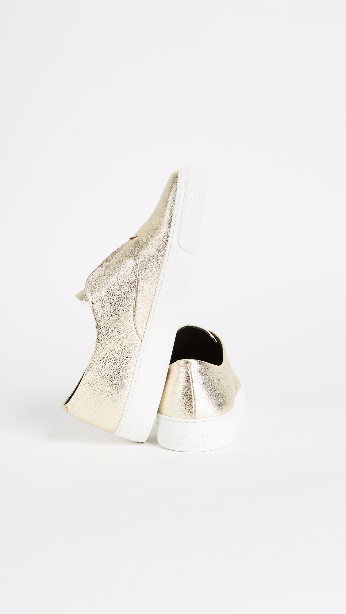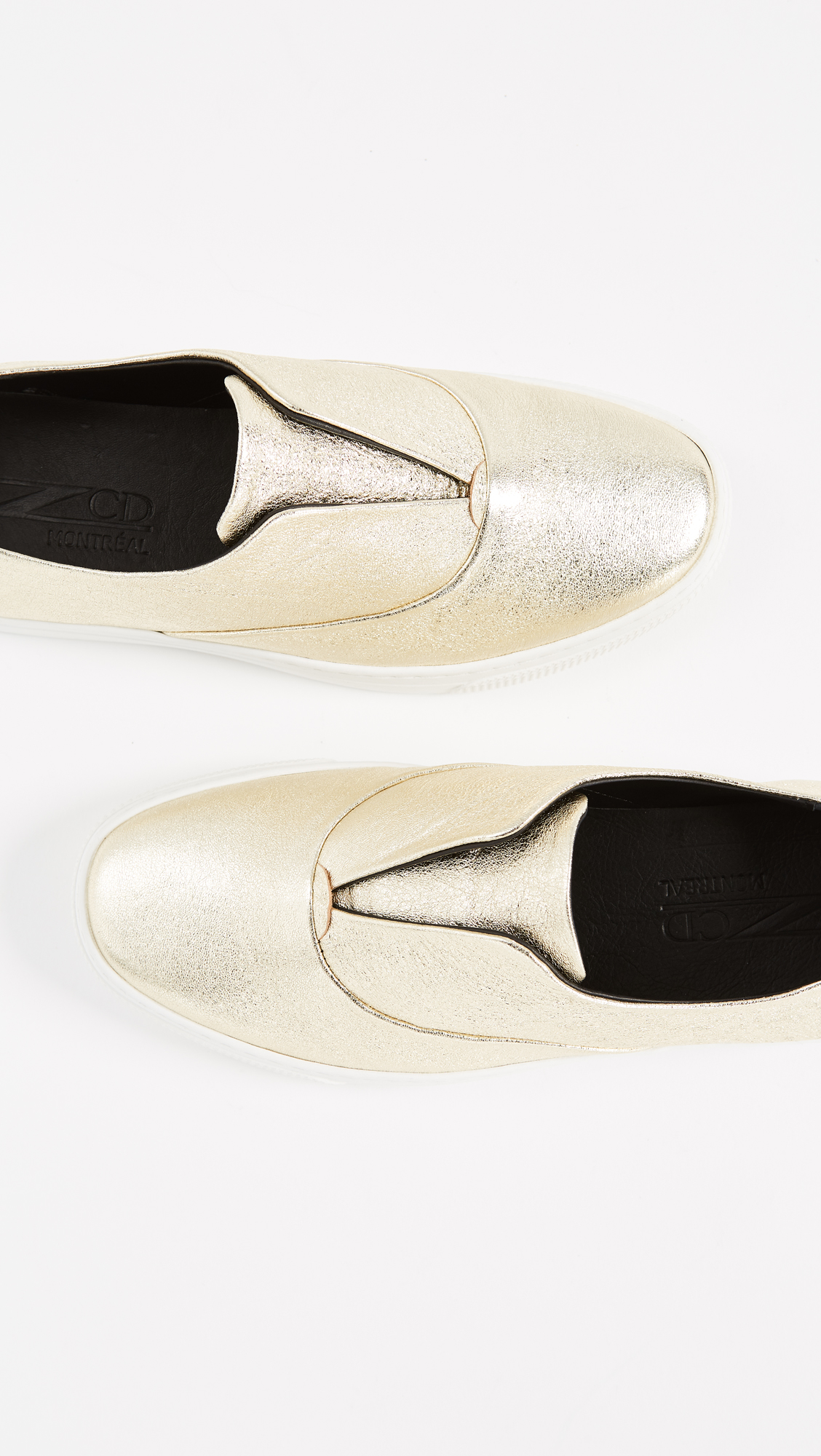 Casual ZCD Montreal slip-on sneakers are given a bold update with crackled, metallic leather. Hidden elastic straps at the notched top line. Rubber sole.