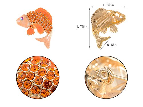 UNIQUE DESIGN - Gold tone metal alloy base rhinestone encrusted Koi fish in blue, green or purple with hand painted enamel face, fin and tail.