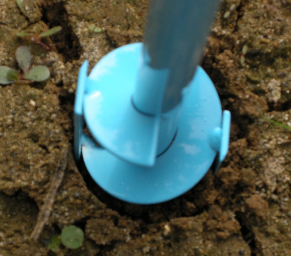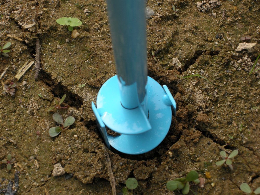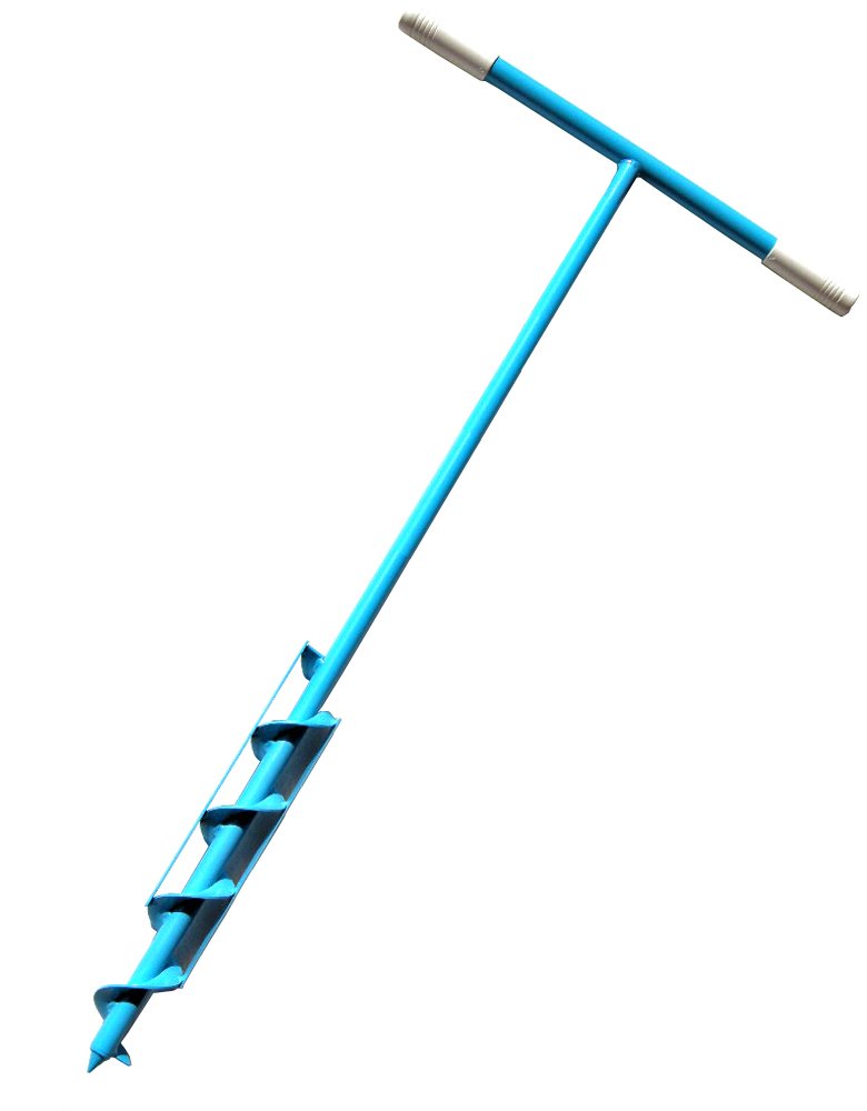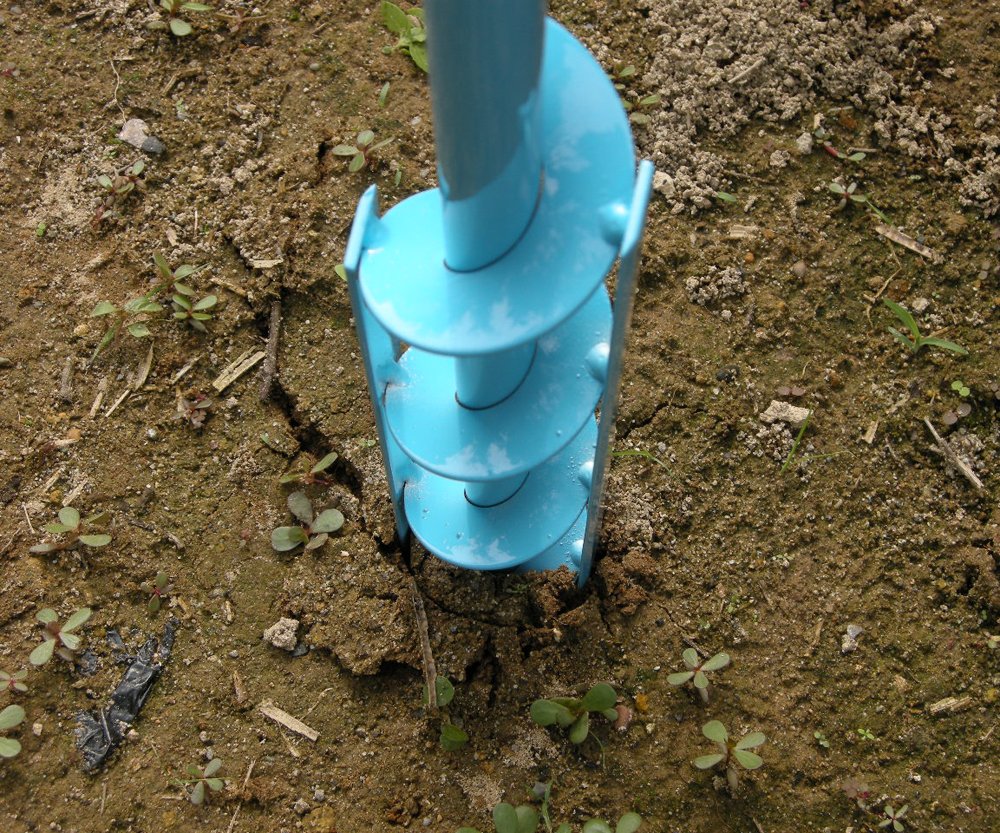 "Helix" plays a role of guide and "thin blade" is structured to cut soil, digging a hole with small repetition instead of digging into force