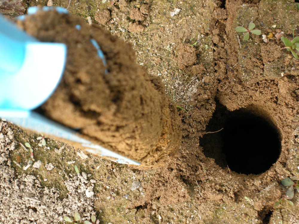 In the vinyl house, since it fills the pipe 50 to 60 cm, it is made to dig a little big hole considering the soil pressure in the ground