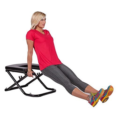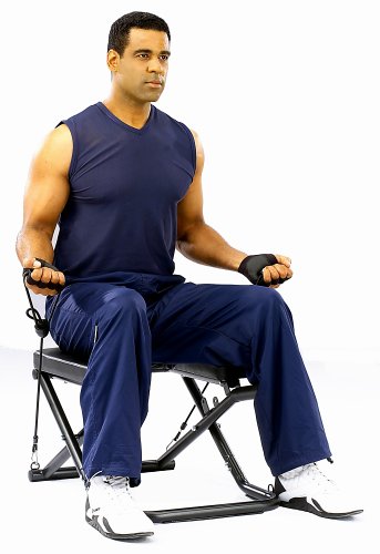 Tension straps provide weight resistance; folds for easy storage