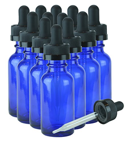 12 Blue Cobalt 1 oz. Dropper Bottles (With Child Resistant Caps)