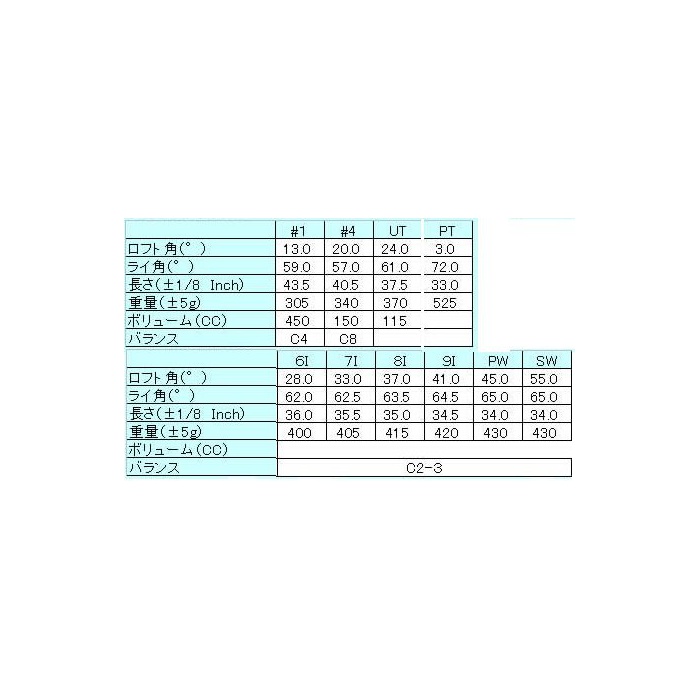 클럽 무게:#1/305g #4/340g UT24/370g #6/400g #7/405g #8/415g #9/420g PW/430g SW/430g PUTTER/525g