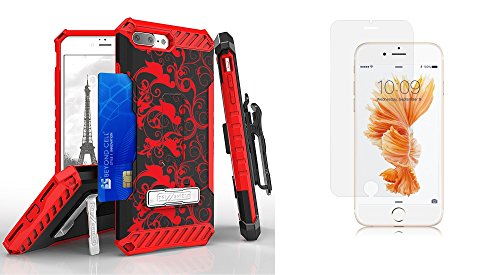 -. Feature : Premium Tri-Shield triple layer impact resistant red armor kickstand phone case cover / belt clip holster combo and Atom LED / Case is made of High-Grade Polycarbonate and inner silicone core with shock absorbent pads to protect your device from scratches, bumps, and drops. Impact resistant hard rubberized polycarbonate plastic shell with a built in kickstand that allows for comfortable and hands-free easy viewing. / Case features a built in slot for a single ID or credit card. Includes optional lanyard loop for secure hold. Comes with a tough belt clip holster combo that can swivel / rotate 360 degrees. Precise cutouts for buttons, ports, cameras and speakers. / Tempered glass screen protector is 100% transparent clear and comes sealed with cleaning cloth and easy install instructions. Oleophobic coating prevents fingerP.R.Ints and other contaminants and makes the film easy to clean. The surface of the tempered glass has a hardness of 8-9H, three times stronger than regular PET film. Does not affect the touch screen's sensitivity. / Compatible with the Apple iPhone 8 Plus (5.5-Inch Display)