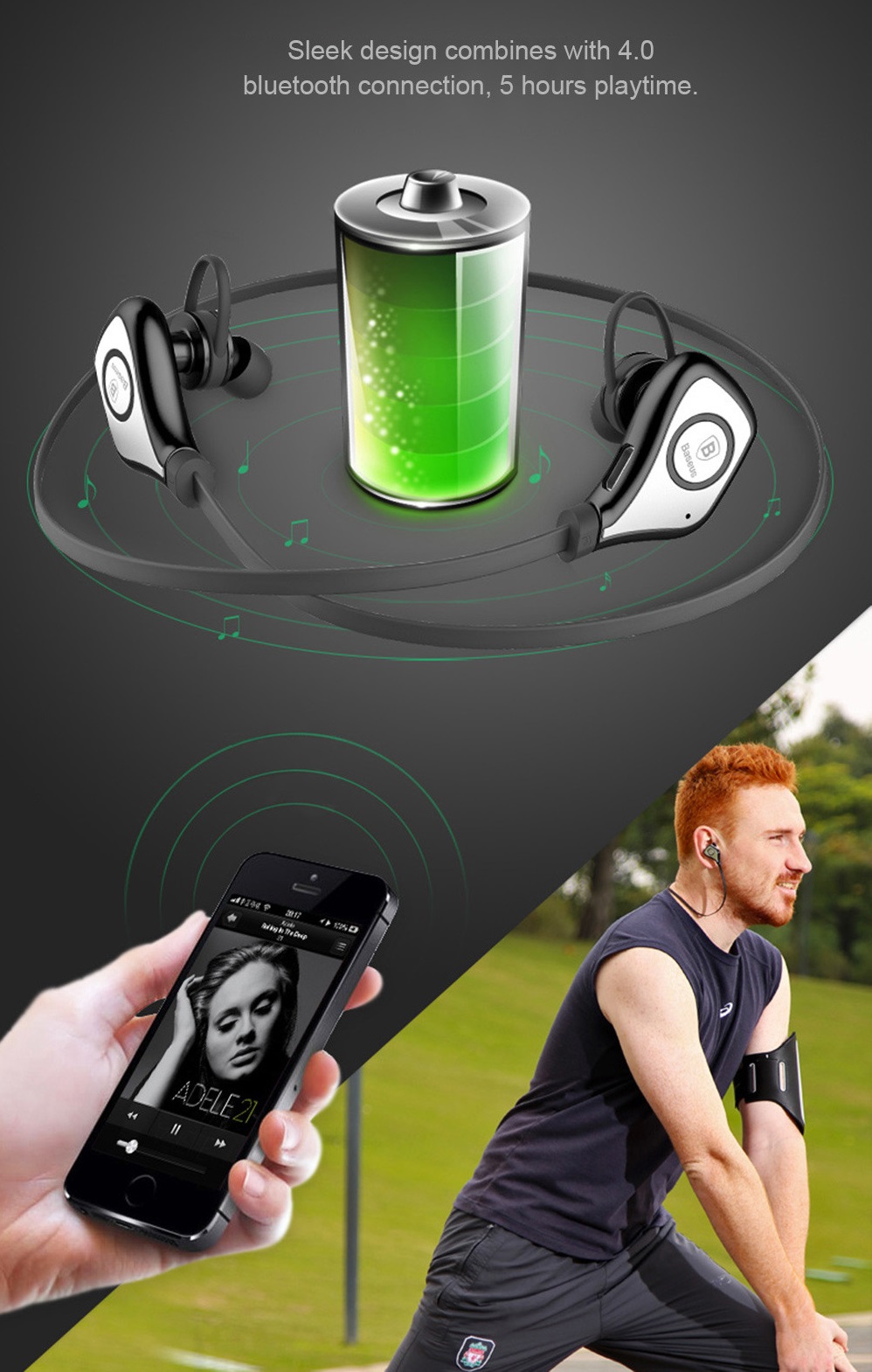 - Sleek design combines with 4.0 bluetooth connection, double channels wireless stereo headphone, free you from being bounded.