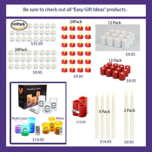 Enjoy candles these innovative REAL WAX LED candles. Enjoy candles without the messy wax and dangerous flames as well as the convenience of the remote control and timer. Flameless candles are safe to use with children and pets as well as near curtains, beds and other home furnishings. The remote control lets you use the flameless candles in hard to reach areas such as tall shelves or even chandeliers..Feature
