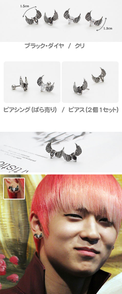 韓国スター・アクセサリー TEENTOP(ティーントップ)st デビル・ウィング ピアス(2個1セット)&ピアシング(ばら売り)(4種1択)