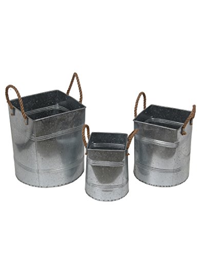 Privilege 18846 3 Piece Galvanized Buckets Casual Canister, Steel, Medium