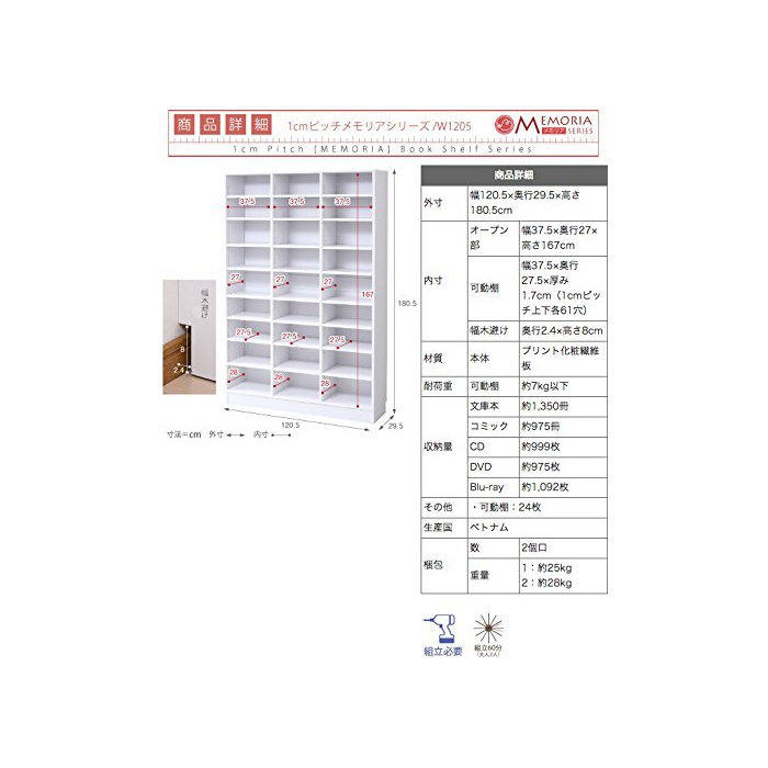 【내하중】 [가동붕]약7kg이하 고,【수납량】 [문고]약1188권 고,[코믹]약858권 고,[CD]약918매 고,[DVD]약858매 고,[Blu-ray]약1014매
